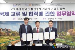 한국사회적경제신문 황인규 기자 | 성남시는 미국 콜로라도주 오로라시의 한국전 참전용사 기념비 건립(2026년 하반기 완공 목표)에 힘을 보내기로 했다. 시는 10월 21일 오후 3시 시청 4층 제1회의실에서 신상진 성남시장과 한영현 국제로타리3600지구 성남모란로타리클럽 회장, 이승우 미국 오로라시 한국전참전용사기념비건립위원회 이사장 등 9명이 참석한 가운데 ‘오로라시 한국전 참전용사 기념비 건립을 통한 국제 교류 및 협력 업무에 관한 협약’을 체결했다. 주요 협약 내용은 △한국전 참전용사 기념과 역사적 가치 계승 △국제 교류를 통한 다양한 프로그램 추진 △기념비 건립을 위한 모금 활동과 시민 참여 확대 △행정적 지원 및 교류 행사 협조 등이다. 이번 협약은 성남시가 지난해 1월 미국 오로라시 방문 때 교민 사회가 추진 중인 한국전 참전용사 기념비 건립 소식을 들은 것이 계기가 됐다. 시는 최근 1년 8개월간 6.25참전유공자회 등을 통해 모은 성금 1940만원을 지난 9월 오로라시 한국전참전용사기념비건립위원회에 전달하는 등 꾸준히 협력해 왔다. 오로라시 한국전 참전용사 기념비는 현재
