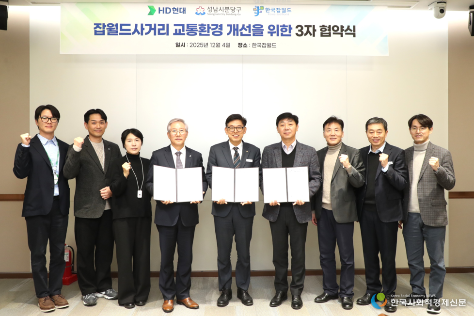 분당구청이 지역의 상습 교통혼잡 지점을 개선하기 위해 HD현대, 한국잡월드와 손을 잡았다. 분당구청(구청장 김광병)은 지난 4일 ‘잡월드사거리 교통환경 개선을 위한 3자 업무협약’을 체결했다고 밝혔다. 이번 협약은 퇴근 시간대 통근버스 대기로 인한 정체와 불법 주정차로 발생하던 시민 불편을 해결하기 위한 실질적 대책으로 마련됐다.