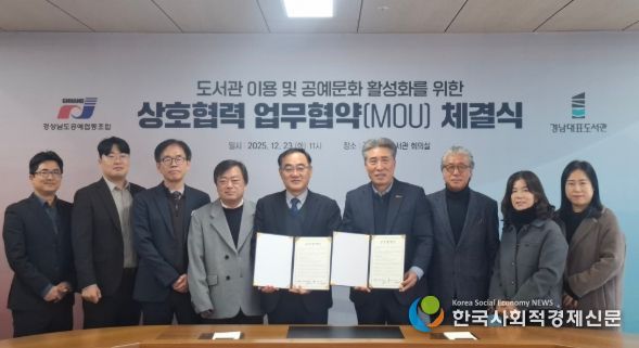 한국사회적경제신문 기자 | 경남대표도서관(관장 강순익)은 23일 오전 11시 경남대표도서관 회의실에서 경상남도공예협동조합(이사장 허일)과 도민의 공예문화 향유 기회 확대 및 도서관 이용 활성화를 위한 업무협약을 맺었다고 밝혔다.
