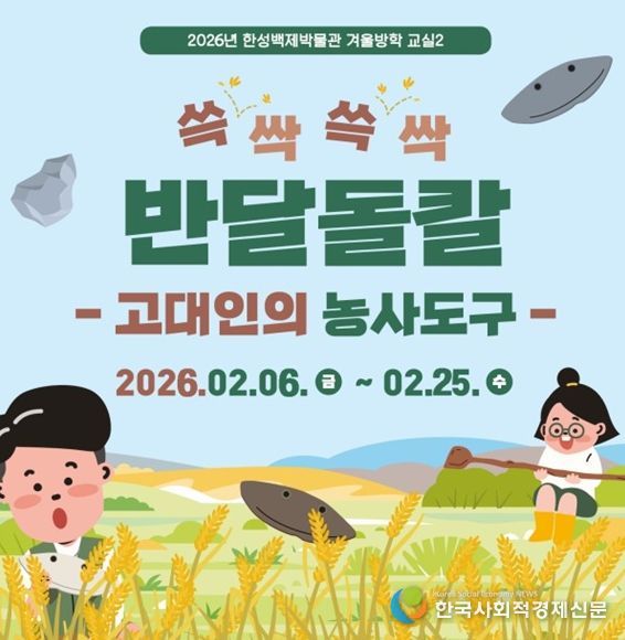한국사회적경제신문 기자 | 서울시 한성백제박물관은 겨울방학을 맞아 초등학생 자녀를 둔 가족을 대상으로 2월 6일부터 25일까지 ‘2026년 겨울방학교실2 '쓱싹쓱싹 반달돌칼:고대인의 농사도구'’를 운영한다. 고대 사회의 생활상과 농경 문화를 쉽고 흥미롭게 이해할 수 있는 프로그램이다.