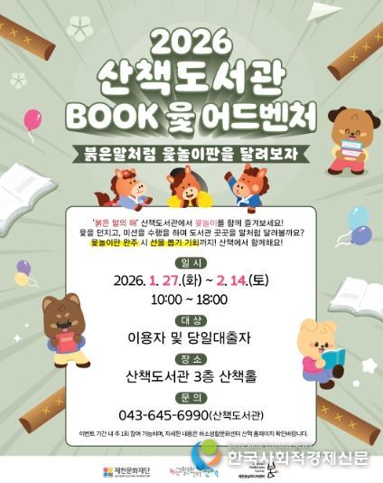 한국사회적경제신문 기자 | 제천문화재단은 2026년 새해를 맞아 제천 지역 주민들을 대상으로 윷놀이를 활용한 ‘2026 산책도서관 BOOK 윷 어드벤처’를 운영한다고 밝혔다.