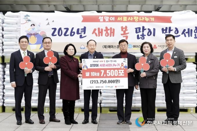재단법인 에이스경암은 2월 5일 성남시에 2억1375만원 상당의 쌀 7500포대(10㎏ 들이)를 기탁했다.