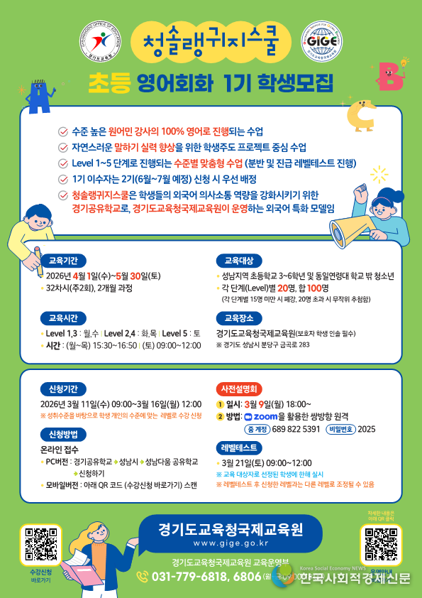 먼저 ‘온라인 및 찾아가는 기초 영어 프로그램’을 통해 경기 전역 학생들을 대상으로 기초 영어 중심 교육을 실시한다. 지역 간 교육격차를 완화하고 사교육 의존도를 낮추기 위해 온라인 수업과 학교 방문 수업을 병행해 운영한다. 이를 통해 학생들이 공교육 안에서 안정적으로 기초 영어 역량을 기를 수 있도록 지원하고 있다.