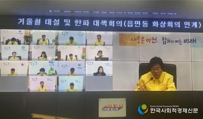 아울러, 김경희 이천시장은 이번 비대면 재난대응 읍면동 첫 화상회의 주제로 “겨울철 대설 및 한파 대책”을 담당부서장 및 읍면동장이 참석한 가운데 ▲부서별 주요 추진사항 ▲읍면동 이면도로 제설 대책 ▲읍면동 한파 지원 사항 등 중점 추진사항을 점검했다.