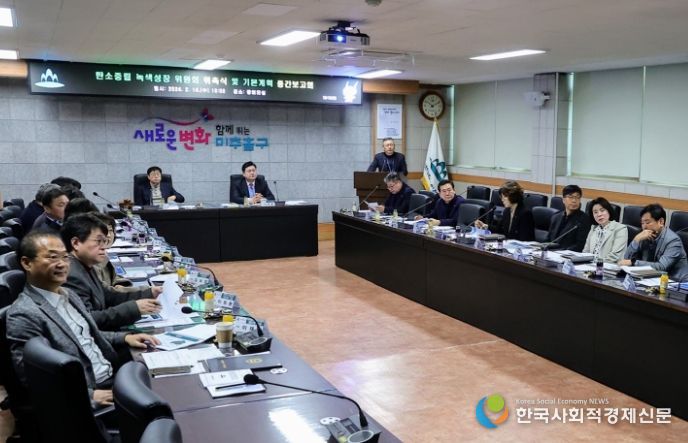 한국 사회적경제신문 김인효 기자 | 인천시 미추홀구는 14일 ‘2050 탄소중립녹색성장위원회’ 위촉식과 ‘탄소중립 녹색성장 기본계획 수립 용역 중간 보고회’를 열었다고 밝혔다.