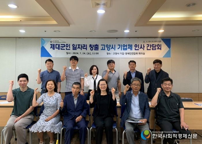 한국사회적경제신문 KSEN 김인효 기자 | 국가보훈부 경기북부제대군인지원센터는 7월 24일에 고양시 기업·경제인연합회 회의실에서 고양시 지역 제대군인 일자리 창출을 위한 기업체 인사 간담회를 개최했다.
