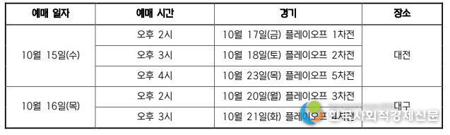 한국사회적경제신문 김은영 기자 | KBO는 10월 17일(금)부터 열리는 삼성 라이온즈와 한화 이글스의 2025 신한 SOL뱅크 KBO 플레이오프 입장권 예매를 10월 15일(수) 오후 2시부터 진행한다.