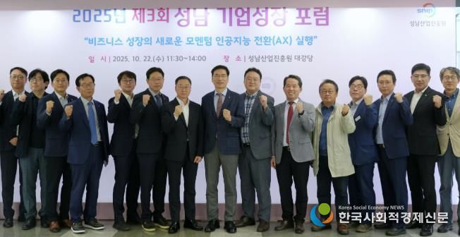 한국사회적경제신문 황인규 기자 | 성남산업진흥원은 지난 10월 22일 진흥원 대강당에서 기업인과 유관기관 임직원 160명이 참석한 가운데 2025년 제3회 ‘성남기업성장포럼’을 개최했다.