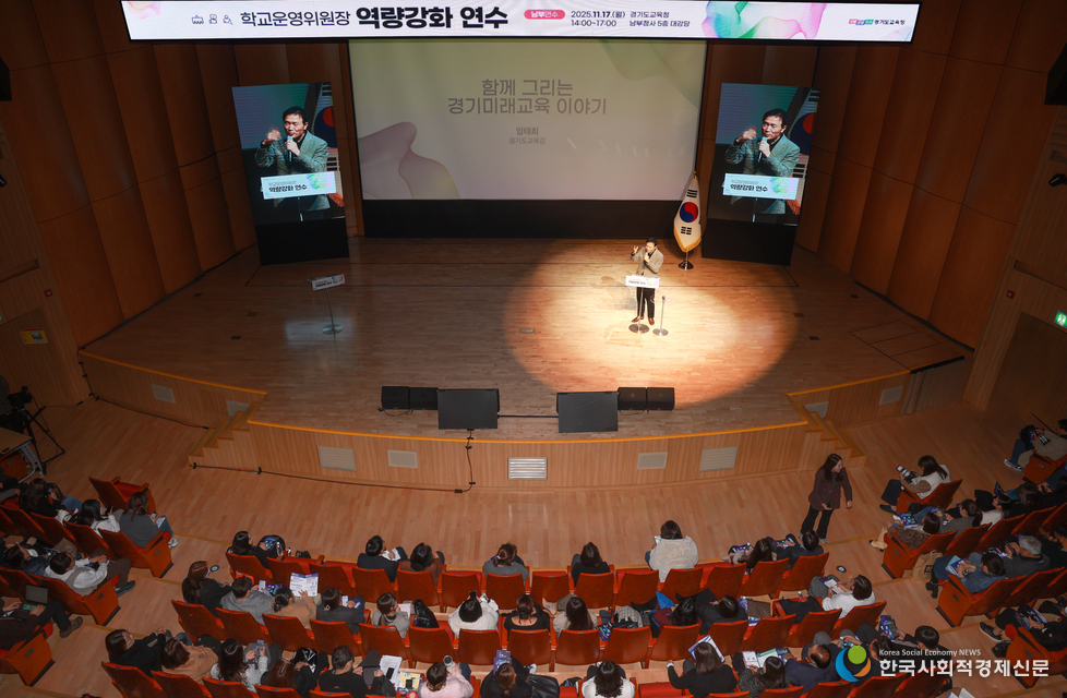 경기도교육청이 17일 남부청사에서 ‘2025 학교운영위원장 역량 강화 연수’를 열고 학교 자치 실현을 위한 운영위원장의 전문성과 소통 역량 강화에 나섰다. 이번 연수는 자율성과 책임이 조화를 이루는 학교 운영 문화를 확산하기 위한 자리로, 경기 남부·북부 권역에서 각각 진행된다. 남부권 연수에는 임태희 교육감을 비롯해 특강 강사로 초청된 김재원 전 KBS 아나운서, 도내 초·중·고 학교운영위원장 400여 명이 참석했다.