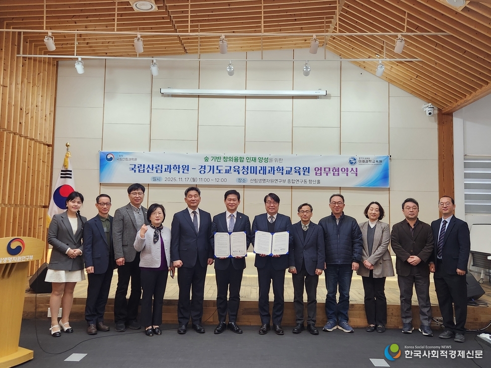 경기도교육청미래과학교육원이 17일 국립산림과학원과 숲 기반 창의융합형 인재 양성을 위한 업무협약을 체결했다. 이번 협약은 기후·환경 변화에 대응하는 교육 기반을 강화하고, 산림과학의 가치를 미래교육에 접목하기 위한 목적에서 마련됐다. 협약식은 국립산림과학원에서 진행됐으며, 미래과학교육원 박정행 원장과 국립산림과학원 이임균 부장을 비롯한 양 기관 관계자들이 참석했다.