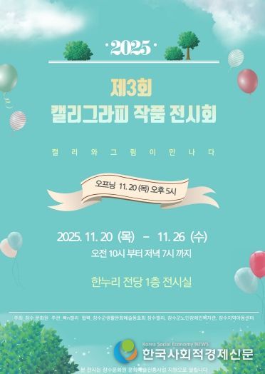 이번 전시는 장수문화원이 주최하고 북n캘리가 주관했으며, 장수군생활문화예술동호회 장수캘리, 장수군노인장애인복지관, 장수지역아동센터가 협력해 진행된다.