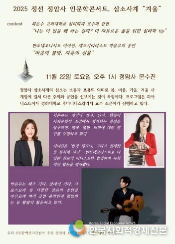 한국사회적경제신문 기자 | 정선 정암사는 오는 11월 22일 오후 1시, 천년 고찰 정암사 문수전에서 ‘2025 정암사 인문학콘서트 삼소사계 – 겨울’을 열고, 한 해의 여정을 마무리한다.