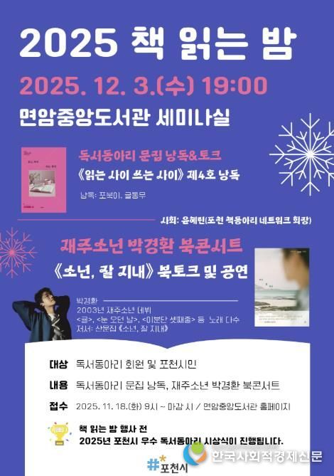한국사회적경제신문 기자 | 포천시는 오는 12월 3일 면암중앙도서관에서 ‘2025 포천시 독서동아리 책 읽는 밤’ 행사를 개최한다.