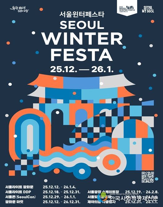 서울시는 12월 12일부터 2026년 1월 4일까지 24일간, 광화문광장~청계천~서울광장~DDP~보신각~우이천 6곳을 잇는 초대형 겨울축제 '2025 서울윈터페스타'를 개최한다고 밝혔다. 올해 행사는 궁중문화축전 및 전국무용제 등 대한민국 대표축제를 성공적으로 이끈 이재원 총감독이 지휘한다.