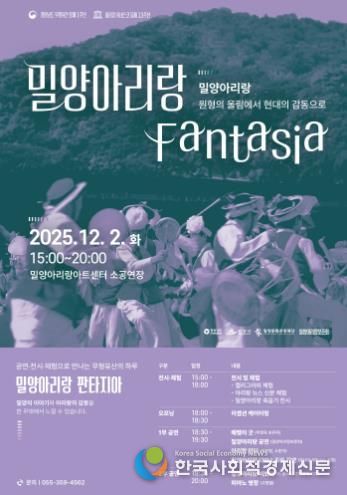 한국사회적경제신문 기자 | 경남 밀양시는 오는 12월 2일 오후 3시부터 8시까지 밀양아리랑아트센터 소공연장과 전수관에서 ‘2025 밀양아리랑 판타지아’를 개최한다.