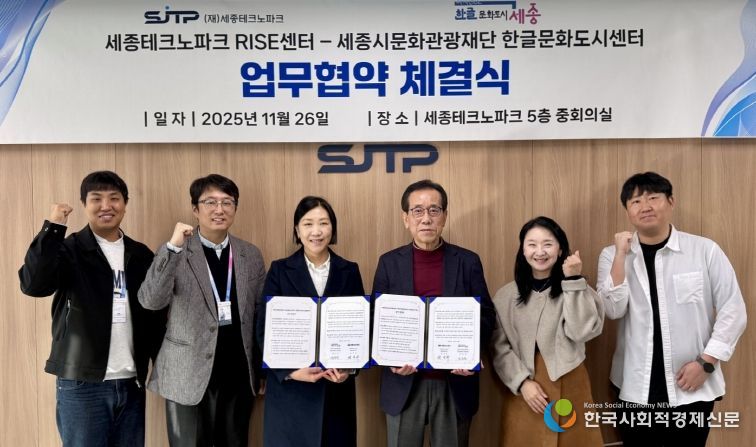 한국사회적경제신문 기자 | 세종시문화관광재단 한글문화도시센터(센터장 양유정)와 세종테크노파크 RISE센터(센터장 윤석무)가 ‘한글문화도시 세종’ 조성과 지역혁신 역량 강화를 위한 협력에 나섰다.