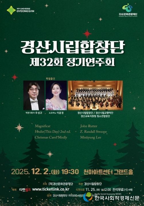 한국사회적경제신문 기자 | 경산시립합창단이 오는 12월 2일 오후 7시 30분 영남대학교 천마아트센터 그랜드홀에서 2025년 마지막 정기연주회를 개최한다.