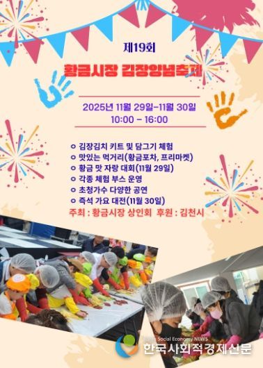 한국사회적경제신문 기자 | 김천시에서는 오는 29일~30일 황금동 한신로 일원에서 ‘제19회 황금시장 김장양념축제’를 개최한다고 밝혔다.