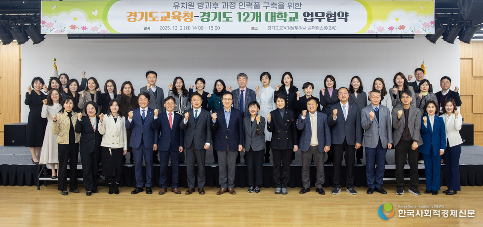 경기도교육청이 유치원 방과후 과정의 인력 부족 문제 해결을 위해 도내 12개 대학과 손잡고 인력풀 구축에 나섰다. 교육청은 2일 남부청사에서 ‘유치원 방과후 과정 인력풀 구축을 위한 업무협약’을 체결하고 안정적인 돌봄 환경 조성을 위한 상생 협력의 첫발을 내디뎠다.
