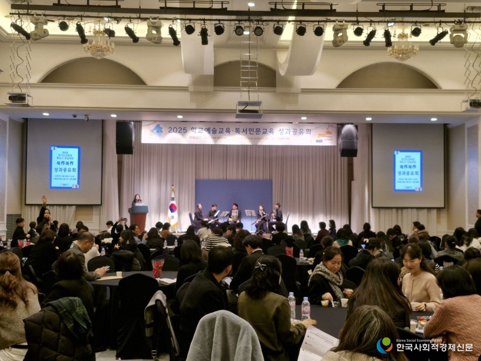 경기도교육청이 3일 아일랜드캐슬에서 ‘2025 학교예술·독서 교육 성과공유회’를 열고 2025년 한 해 동안 추진된 학교예술·독서 교육의 다양한 성과를 돌아보는 자리를 마련했다. 이번 행사는 예술과 독서를 기반으로 한 학교교육의 질 향상을 목표로 마련됐으며, 정책 담당자와 교원 등 400여 명이 참석해 현장의 목소리와 정책 방향을 함께 나눴다.