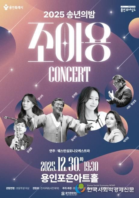 한국사회적경제신문 기자 | 용인문화재단은 오는 12월 30일 용인포은아트홀에서 지역예술인과 함께하는 ‘2025년 송년의 밤 - 조아용 콘서트‘를 용인예총(한국예총 용인지회)과 공동 개최한다.