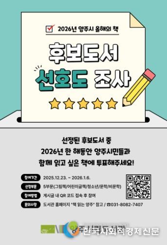 한국사회적경제신문 기자 | 양주시가 오는 12월 23일부터 2026년 양주시 『올해의 책』 선정을 위한 시민 설문조사를 실시한다.