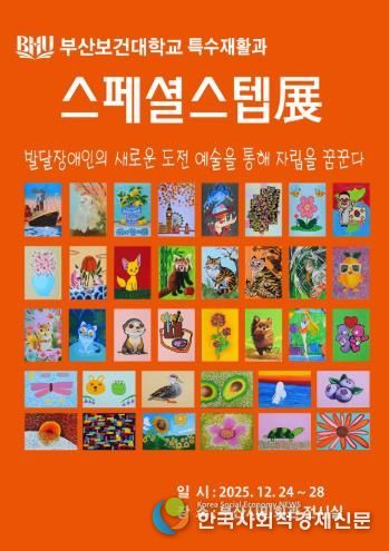 한국사회적경제신문 기자 | (재)부산문화회관은 부산시민회관 전시실에서 12월 24일부터 28일까지, 발달장애 학생들을 위한 교육과 재활의 통합적 성과를 지역사회와 공유하고자 '부산보건대학교 특수재활과 스페셜스텝전'을 개최한다.