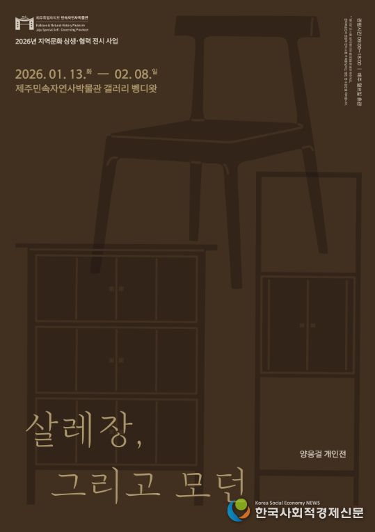 한국사회적경제신문 기자 | 제주민속자연사박물관은 ‘지역문화 상생·협력 전시 사업’의 일환으로 1월 13일부터 2월 8일까지 갤러리 벵디왓에서 양웅걸 개인전 '살레장, 그리고 모던'을 개최한다.
