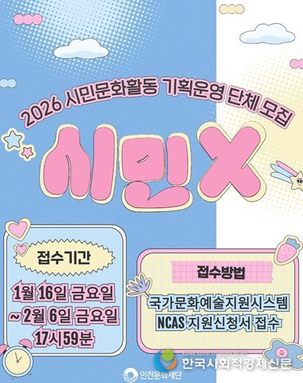 한국사회적경제신문 기자 | 인천문화재단은 시민문화활동 활성화를 위해 시민주도형 문화프로젝트를 기획운영할 인천소재 단체를 공개 모집한다.