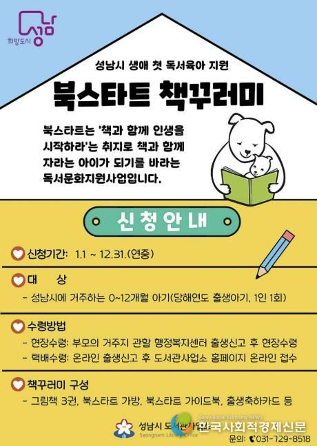 한국사회적경제신문 황인규 기자 | 성남시는 올해 출생아 가정을 대상으로 ‘북스타트(Book Start) 책 꾸러미 지원사업’을 시행한다고 6일 밝혔다.
