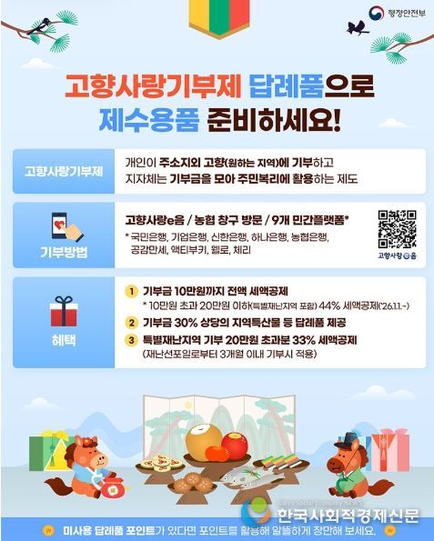 한국사회적경제신문 claire-shin 기자 | 고향사랑기부제 답례품으로 제수용품 준비하세요!