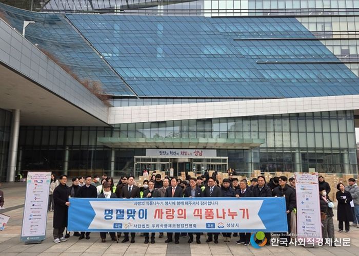 한국사회적경제신문 황인규 기자 | ㈔성남식품협회(옛 우리식품제조협업인협회)가 설 명절을 앞둔 2월 10일 1억2000만원 상당의 먹거리를 43곳 사회복지시설에 기부했다.