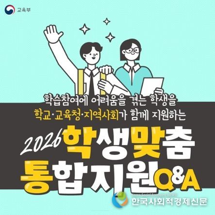 한국사회적경제신문 claire-shin 기자 | 학습참여에 어려움을 겪는 학생을 학교·교육청·지역사회가 함께 지원하는 <2026 학생맞춤통합지원 Q&A>