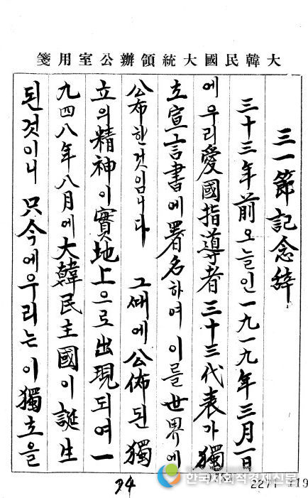 한국사회적경제신문 claire-shin 기자 | 행정안전부는 제107주년 3‧1절을 맞아 3‧1운동을 기념하고 독립 정신을 조명하는 대통령기록물을 3월 1일부터 ‘대통령기록관 누리집’을 통해 공개한다고 밝혔다.