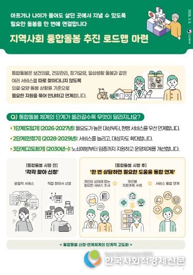 지역사회 통합돌봄제도는 고령화 심화와 복합적 돌봄수요 증가에 대응하여, 기존에 분절적으로 제공되던 의료‧요양 등 돌봄서비스를 통합적으로 연계하기 위해 도입됐다. 그간 시범사업을 통한 준비과정을 거쳐 오는 3.27일 전국적으로 시행될 예정이다.
