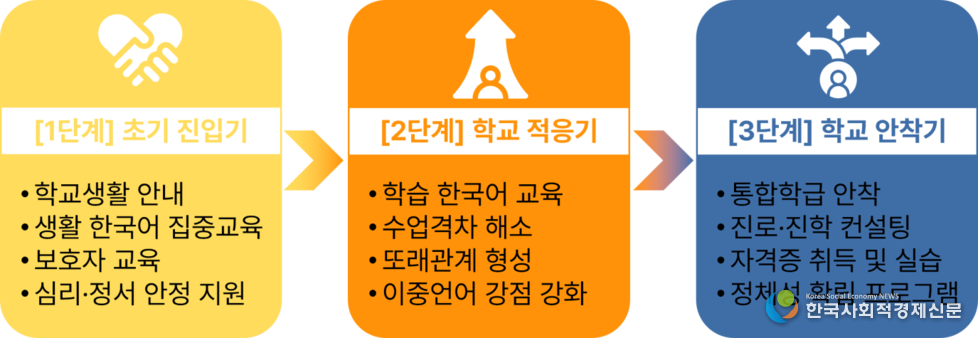 이주배경학생의 학교 적응을 돕기 위한 단계별 지원 체계도 마련했다. 학생의 성장 과정을 ‘초기 진입기-학교 적응기-학교 안착기’로 구분해 시기별 맞춤형 교육과 상담 프로그램을 제공하는 방식이다.