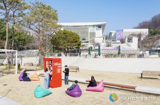 한국사회적경제신문 황인규 기자 | 성남아트센터 광장 앞 잔디밭에 시민들을 위한 열린 독서 공간인 ‘책 읽는 광장 도서관’이 조성됐다.