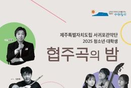 한국사회적경제신문 기자 | 서귀포시는 11월 27일 서귀포예술의전당 대극장에서 서귀포관악단의 2025 청소년 · 대학생 협주곡의 밤을 개최한다. 서귀포관악단의 대표 기획 공연인 '협주곡의 밤'은 제주에 거주하거나 제주 출신의 미래 음악인을 위한 무대로, 2022년 1회를 시작으로 올해로 4회차를 맞이했다. 이번 공연은 지난 5월 협연자 모집을 시작으로, 6월 영상심사, 7월 실기심사를 거쳐 총 23명의 지원자 중 최종으로 선정된 10명의 연주자들이 무대에 오른다. 서귀포관악단과 함께 미래로 한발짝 나아갈 신진 음악인들을 위한 이번 공연은 서귀포관악단의 김동원 트레이너가 지휘를 맡는다. 특히 올해는 다양한 악기 구성으로 예년과 다른 무대를 만날 수 있다. 피아노를 비롯해 플루트, 바순, 트럼펫, 유포니움 등의 관악 부문과 소프라노 협연까지 포함되어 풍성한 무대를 선보일 예정이다. 여기에 올해 신설된 현악 부문에서는 바이올린과 더블베이스 협연자가 선정되어, 관악단과의 색다른 조합을 만나볼 수 있을 것이다. 본 공연은 8세 이상 관람 가능하며 온라인 사전 예약자를 대상으로 무료