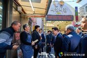 한국사회적경제신문 claire-shin 기자 | 이재명 대통령은 13일 오후, 충북 청주 사창시장을 방문하여 민생 현장의 활기를 점검하고 지역 주민 및 상인들과 진솔한 소통의 시간을 가졌다. 청주 사창시장은 조선시대 양곡을 보관했다는 데에서 유래를 찾을 수 있는 유서 깊은 곳으로, 1980년대 현대적 시장의 면모를 갖춘 이래 지역 경제의 중심이자 종합시장으로서 소임을 다해오고 있다. 상인회장의 안내로 시장 곳곳을 둘러본 이 대통령은 장을 보러 나온 시민들과 반갑게 인사를 나누었다. 사창시장을 찾은 시민들은 뜨거운 박수와 환호로 대통령을 맞이했으며, 상인들은 “사창시장을 방문해 준 첫 대통령”이라며 반가움을 표했다. 상인들은 대통령의 손을 맞잡고 “더 살기 좋은 나라를 만들어 달라”, “건강을 잘 챙기며 일해 달라”는 격려와 응원을 전하며 따뜻한 포옹을 나누기도 했다. 특히 이 대통령은 시장 내 한 두부가게를 방문해 국산 콩으로 두부를 만드는 과정을 세심하게 살핀 뒤, 가게 안 평상에서 상인회장 및 주인 부부와 나란히 앉아 갓 만든 즉석 두부를 시식하며 담소를 나누었다. 이 대통령이 국산 콩과 수입 콩 두부의 선호도를 묻자,