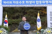 한국사회적경제신문 김인효 기자 | 이상일 용인특례시장은 6일 처인구 양지면 대대리 ‘자유수호희생자위령탑’에서 열린 제45회 자유수호희생자 합동위령제에 참석해 희생자들을 추모했다. 이날 행사엔 이상일 시장을 비롯한 박창무 한국자유총연맹 용인시지회장 등 지역 내 단체 관계자와 시민 50여 명이 참석했다. 행사는 희생자를 기리기 위한 추도 의식, 추념사·추도사, 조가 연주와 제창, 진혼무, 헌화 순으로 진행됐다. 이상일 시장은 추도사에서 “고대부터 자유는 인간에게 가장 중요한 가치로 자유를 얻지 못하면 우리는 평등해질 수가 없다”며 “선배 세대들이 목숨을 바치면서 자유를 지켜낸 모습만 봐도 자유는 그냥 얻어진 것이 아니다”라고 강조했다. 이 시장은 “우리가 매년 위령제를 지내는 것은 1990년 9월 21일 희생당하신 분들의 고귀한 넋을 우리가 면면히 잘 이어받아 선배 세대가 소중하게 지킨 이 나라를 더욱더 발전시켜 후배 세대들에게 물려주기 위함이라고 생각한다”며 “호국영령의 넋이 하늘나라에서도 늘 평안을 누리시길 기원드린다”고 했다. 자유수호희생자위령탑은 1950년 9월 21일 용인·화성·수원 등지에서