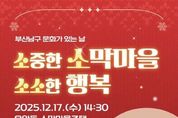 한국사회적경제신문 기자 | 부산 남구는 오는 12월 17일 오후 2시 30분, 우암동 소막마을 주택에서 2025 남구 문화가 있는 날 '소중한 소막마을, 소소한 행복' 공연을 개최한다고 밝혔다. 이번 공연은 역사적 의미가 담긴 소막마을 주택을 지역 문화공간으로 활용하여, 주민들이 일상에서 자연스럽게 문화예술을 접할 수 있도록 마련됐다. 무대는 마술 풍선쇼, 합창, 퓨전국악, 트로트 등 다양한 장르로 구성되어 남녀노소 누구나 부담 없이 즐길 수 있는 무대로 꾸며진다. 특히 소막마을 주택의 아늑한 분위기가 더해져 ‘작지만 소중한 행복’을 나누는 따뜻한 연말 공연이 될 것으로 기대된다. 오은택 남구청장은 “일상 가까이에서 이웃과 함께 문화를 즐기는 경험은 지역 공동체의 정서 교류에 큰 의미가 있다”며 “많은 분이 오셔서 따뜻한 무대와 즐거운 공연을 함께하시길 바란다”고 전했다. [뉴스출처 : 부산시남구]