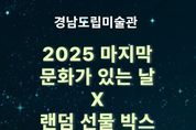 한국사회적경제신문 기자 | 경남도립미술관은 12월 31일 ‘문화가 있는 날’을 맞이해 연말을 함께 즐길 수 있는 특별 이벤트를 마련한다고 밝혔다. 이날 미술관은 전시실을 무료 개방하며, 관람 시간 또한 오후 8시까지 연장 운영된다. 오후 6시부터는 미술관을 찾은 관람객 중 선착순 30명에게 참여 기회가 주어지는 ‘행운권 추첨 이벤트’가 진행되며, 참여자에게는 랜덤 선물 박스 등 다양한 경품이 증정된다. 이번 행사는 ‘문화가 있는 날’을 통해 관람객이 미술관을 보다 가깝게 느끼고, 한 해를 예술과 함께 마무리할 수 있도록 기획됐다. 미술관 관계자는 “2025년을 함께 해준 지역민들에게 감사의 마음을 전하며, 작은 선물과 예술의 경험이 따뜻한 연말 추억이 되길 바란다”라고 전했다. 한편, 이번 야간 개장에서는 현재 진행 중인 환경을 주제로 한 체험형 전시《테라폴리스를 찾아서》와 함께《현대옻칠예술: 겹겹의 시간》도 관람가능하다. [뉴스출처 : 경상남도]