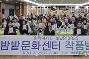 한국사회적경제신문 기자 | 수원시 장안구 율천동 주민자치회는 지난 8일 율천동 밤밭문화센터 3층 대강당에서 '2025 율천동 밤밭문화센터 작품발표회'를 성황리에 개최했다. 이번 발표회에는 강사와 수강생, 지역 주민 등 200여 명이 함께했으며, 그동안 수업을 통해 쌓아온 실력을 발표하고 서로를 격려하는 시간을 가졌다. 특히 올해는 사전 공연으로 마련된 매직쇼가 연말 분위기를 한껏 고조시키며 참석자들의 큰 호응을 얻었다. 본 공연에서는 퓨전장구, 노래교실(합창), 라인댄스 등 7개 프로그램의 무대가 펼쳐졌으며, 꽃꽂이, 서양화, 퀼트 등의 작품 전시존도 함께 마련되어 다채로운 볼거리를 제공했다. 정찬해 주민자치회장은 “작품발표회를 위해 애쓰신 수강생과 강사 여러분께 깊은 감사를 드린다”며 “앞으로도 주민들이 쉽게 참여할 수 있는 생활문화 프로그램을 운영하고, 쾌적한 환경에서 즐겁게 문화생활을 누릴 수 있도록 밤밭문화센터 발전을 위해 최선을 다하겠다”고 말했다. 성영신 율천동장은 “배움이 있는 공간은 지역 공동체를 더 따뜻하게 만든다”며 “프로그램 운영이 안정적으로 이어질 수 있도록 적극 협조하겠다”