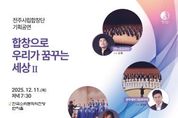 한국사회적경제신문 기자 | 전주시립합창단(예술감독 겸 지휘자 김철)이 지역사회와 함께 만들어가는 연말 음악 축제를 선보인다. 전주시립합창단은 오는 11일 오후 7시 30분, 한국소리문화의전당 연지홀에서 지역 아마추어 합창단과 함께하는 송년음악회를 개최한다. ‘합창으로 우리가 꿈꾸는 세상Ⅱ’ 제하의 이번 공연에는 전주시립합창단을 비롯해 △좋은친구들남성합창단(지휘 이영수) △전주엘여성합창단(지휘 윤영권) △전북레이디스합창단(지휘 박신) △완주에버그린콰이어(지휘 강연모) △부귀초등학교 꿈드림합창단(지휘 임연정) 등 5개 아마추어 합창단이 무대에 오른다. 특히 이번 공연은 총 200명의 연주자가 참여하는 대규모 연합무대로, 시민들에게 웅장한 합창의 감동을 선사할 것으로 기대를 모은다. 뿐만 아니라 이번 공연에서는 전주를 주제로 한 위촉 초연곡 ‘그곳에서’를 처음으로 선보인다. 홍원표 시인의 시에 전주 출신 작곡가 이범준이 곡을 붙인 이 작품은 전주에 대한 그리움과 사랑, 그리고 다시 만남을 바라는 마음을 담아낸 노래로 구성됐으며, 공연 후반부 연합합창으로 울려 퍼지며 송년 무대의 절정을 장식할 예정이다