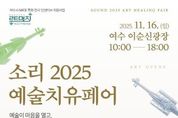 한국사회적경제신문 기자 | 여수시는 오는 11월 16일 이순신광장에서 ‘소리 2025 예술치유페어’를 개최한다. 이번 행사는 ‘소리를 느끼고, 마음을 치유하다’를 주제로 음악·악기·미술 등 다양한 감각 기반 콘텐츠를 시민이 직접 체험하며 예술적 치유를 경험할 수 있도록 마련됐다. 단순 전시 중심의 행사에서 벗어나 공연·체험·전시를 결합해 도심의 문화적 활력과 시민 정서 회복에 기여할 수 있도록 기획됐다. 특히 지역 예술기업, 공예·악기팀 등 다양한 업체가 참여해 지역 기반의 예술 치유 네트워크를 형성하고 마이스 특화전시 사업의 취지인 지역 산업 및 예술기업과의 연계를 강화하는 계기가 될 전망이다. 행사장 내 ‘소리놀이터’에는 무대와 포토존이 운영되며 시간대별 프로그램이 진행된다. 오전 오프닝 체험을 시작으로 국악과 힐링 악기가 함께하는 특별 무대가 펼쳐지며 시민이 직접 악기를 시연해보는 관객 참여형 콘텐츠도 마련된다. 김상욱 여수시 관광과장은 “이번 ‘소리 2025 예술치유페어’는 시민의 심리적 안정과 문화 향유 기회 확대는 물론 여수 마이스 특화전시사업의 방향인 지역 예술 콘텐츠 육