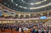 한국사회적경제신문 claire-shin 기자 | 이재명 대통령과 김혜경 여사는 오늘 오후 여의도순복음교회에서 열린 ‘2026 한국교회 부활절 연합예배’에 참석해 부활의 의미를 되새기며 함께 예배를 드렸다. 이번 부활절 연합예배는 총 73개 교단, 7천여 명이 함께 참여한 뜻깊은 행사이다. '부활! 평화! 사랑'이라는 주제 아래, ‘생명의 부활, 한반도 평화’(요한복음 20장 19-23절)를 표어로 삼아 열렸다. 예배는 2026 부활절연합예배준비위원회 대회장인 이영훈 여의도순복음교회 담임목사의 대회사로 시작해 ▲대표기도 ▲성경봉독 ▲설교 ▲특별기도 ▲통성기도 ▲축도 순으로 진행됐다. 이재명 대통령은 축사를 통해 “해마다 개최되는 부활절 연합예배는 우리 사회에 사랑과 희망의 메시지를 전해 왔다”면서 “늘 나라와 국민을 위해 기도해 주시는 한국교회와 성도 여러분께 국민을 대표해서 감사드린다”고 전했다. 이어 “세계를 지탱해오던 평화와 번영의 질서가 약화되고, 연대와 화합이 아닌 갈등과 다툼이 심화되고 있다”면서 “이럴 때일수록 부활의 의미와 함께 오늘의 주제인 평화, 사랑의 의미를 다시 깊이 되새겨야 할