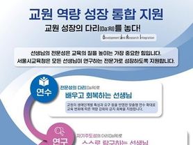 서울시교육청, 교원 역량 성장 통합 지원체계 본격 가동 [서울교원 성장 로드맵} 서울특별시교육청(교육감 정근식)이 교사의 전문성과 자율성을 키우고, 학교 공동체의 협력 문화를 확산하기 위한 ‘2026학년도 교원 역량 성장 통합 지원’ 체계를 본격 추진한다. ‘미래를 여는 협력교육’ 실현을 목표로 한 이번 정책은 기존 연수 방식과 달리 연수·연구·공동체 활동을 통합 지원하는 것이 특징이다. 핵심 사업인 ‘교원 성장의 다리(Da:RI)’는 교사의 생애주기 전반을 아우르는 연수 과정과 자기주도적 연구 활동, 그리고 공동체 기반 성장을 포괄한다. 특히 입직 0~5년부터 성숙기까지 생애단계별 맞춤형 연수를 지원하며, 교사가 스스로 설계하고 선택하는 다양한 직무연수와 회복력 중심 프로그램을 대폭 확대했다. 또한 현장 실천 중심의 연구 활동도 강화한다. 연구단계별 연수, 연구교사 멘토링, 정책 연계 대학원과정 등을 도입하고, ‘연구하는 교사’ 과정을 신설해 전문가 중심의 학습공동체를 지원한다. 특히 ‘한국형 바칼로레아(KB)’와 ‘긍정적 행동지원(PBS)’ 관련 전문 교원 양성 프로그램이 눈에 띈다. 교사 공동체의 성장을 위한 연결 지원도 활발하다. 수업 나눔 행사, A