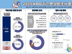 한국사회적경제신문 claire-shin 기자 | KBO는 2025 KBO 리그에 대한 팬 인식과 소비 행태를 분석하기 위해 전문 조사업체인 ㈜글로벌리서치를 통해 온라인 팬 성향 조사를 실시했다. 본 조사는 KBO 리그 생중계 또는 하이라이트를 1회 이상 시청한 만 15세 이상 남녀 4,000명을 대상으로 진행됐다. 조사 결과, 최다 관중 기록을 돌파한 2025년 KBO 리그에 대해 응답자의 73.5%는 KBO 리그가 ‘성장했다’고 인식했으며, 관람 및 시청 빈도가 높은 팬층일수록 이러한 인식이 더욱 뚜렷하게 나타났다. 또한 응답자의 61.4%가 올해 KBO 리그를 직접 관람한 경험이 있다고 답했으며, 내년 KBO 리그를 직접 관람할 의향이 있다고 응답한 비율은 79.9%를 기록했다. 경기 운영 제도에 대해서도 긍정적인 평가가 이어졌다. ABS에 대한 인지도는 94.6%로 가장 높게 나타났다. 또한, 응답자의 81.7%는 피치클락, 체크스윙 비디오판독 등 변경된 제도가 경기 관람에 긍정적인 영향을 미쳤다고 인식했으며, 평균 경기 시간(3시간 2분)에 대해서도 응답자의 69.8%가 ‘적당하다’고 평가해 현 경기 템포와 운영 전