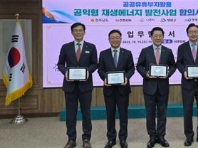 한국사회적경제신문 김태훈 기자 | 전라남도 나주시가 전국 최초로 공공유휴부지를 활용한 공익형 재생에너지 발전사업을 추진하며 시민이 직접 참여하고 수익을 공유하는 새로운 에너지 상생 모델을 선도한다. 나주시(시장 윤병태)는 15일 전남도청에서 전라남도, 영암군, 영광군, 한전KDN(주)과 함께 ‘공익형 재생에너지 발전사업’ 업무협약을 체결했다고 밝혔다. 이번 협약은 정부의 에너지 대전환 정책과 전라남도의 에너지 기본소득 실현 기조에 발맞춰 추진하는 것으로 지속가능한 에너지 생산과 지역사회 이익 환원을 동시에 실현하기 위한 협력체계 구축에 의미가 있다. 특히 나주시는 공공이 보유한 유휴부지에 태양광 발전설비를 설치하고 시민이 직접 발전사업에 참여해 그 수익을 공유함으로써 재생에너지가 단순한 발전사업을 넘어 지역사회 전체의 이익으로 돌아가는 참여, 상생형 모델을 만들어갈 계획이다. 이날 협약식에는 김영록 전라남도지사, 윤병태 나주시장, 우승희 영암군수, 장세일 영광군수, 박상형 한전KDN 대표이사 등 주요 관계자들이 참석해 공익형 재생에너지 발전사업의 성공적 추진과 지속가능한 협력체계 구축을 다짐했다.