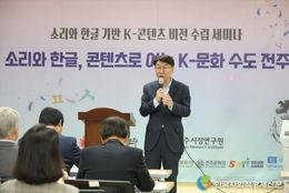 한국사회적경제신문 기자 | 대한민국 문화도시인 전주시가 K-콘텐츠 중심도시로 나아가기 위해 관련 전문가들과 머리를 맞댔다. 전주시와 전주시정연구원은 13일 완판본문화관 인청에서 ‘소리와 한글 기반 K-콘텐츠 비전 수립을 위한 세미나’를 개최했다. 이번 세미나는 전주가 보유한 독보적인 문화 자산인 판소리와 완판본의 가치를 재조명하고, 미래 기술과의 융합을 통해 지역의 성장 동력과 부가가치를 창출하기 위한 비전과 실행 방안을 폭넓게 논의하기 위해 마련됐다. ‘소리와 한글, 콘텐츠로 여는 K-문화 수도 전주-전문가·시민과 함께 비전을 논하다’를 주제로 진행된 이날 세미나에서는 이춘구 향약연구원 연구위원과 안준영 완판본문화관 관장, 홍성덕 전주대학교 교수가 발표를 맡았다. 먼저 첫 번째 발표자로 나선 이춘구 연구위원은 ‘K-소리와 AI 기술의 융합’을 주제로 전통문화의 창의적 계승과 디지털 전환의 방향을 제시했다. 이 연구위원은 이 자리에서 “K-소리(전통음악)가 산업 확장의 새로운 기반이 될 수 있다”면서 “전주가 K-소리 허브도시로 도약하기 위해서는 AI 융합형 문화산업 기반을 구축하고